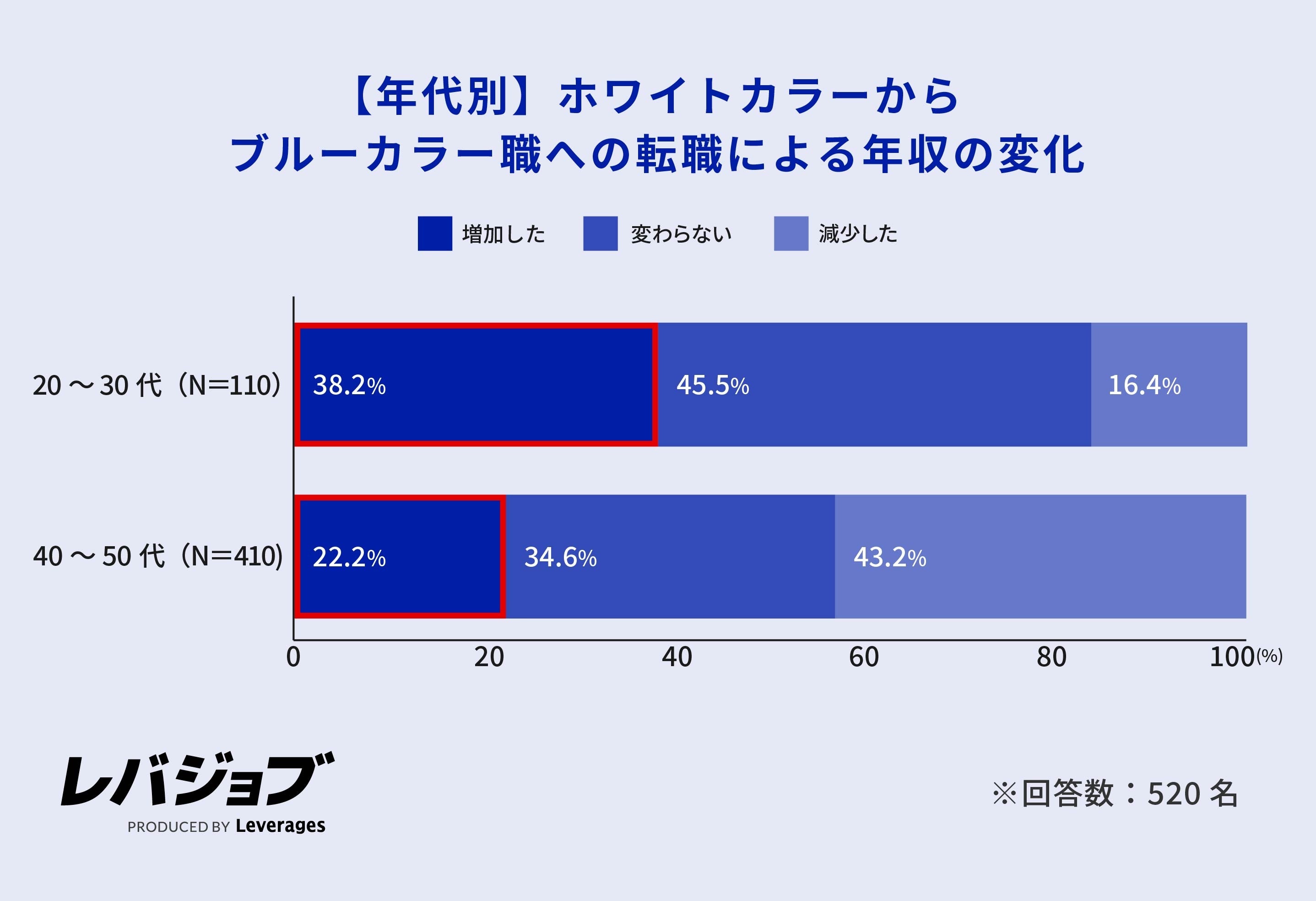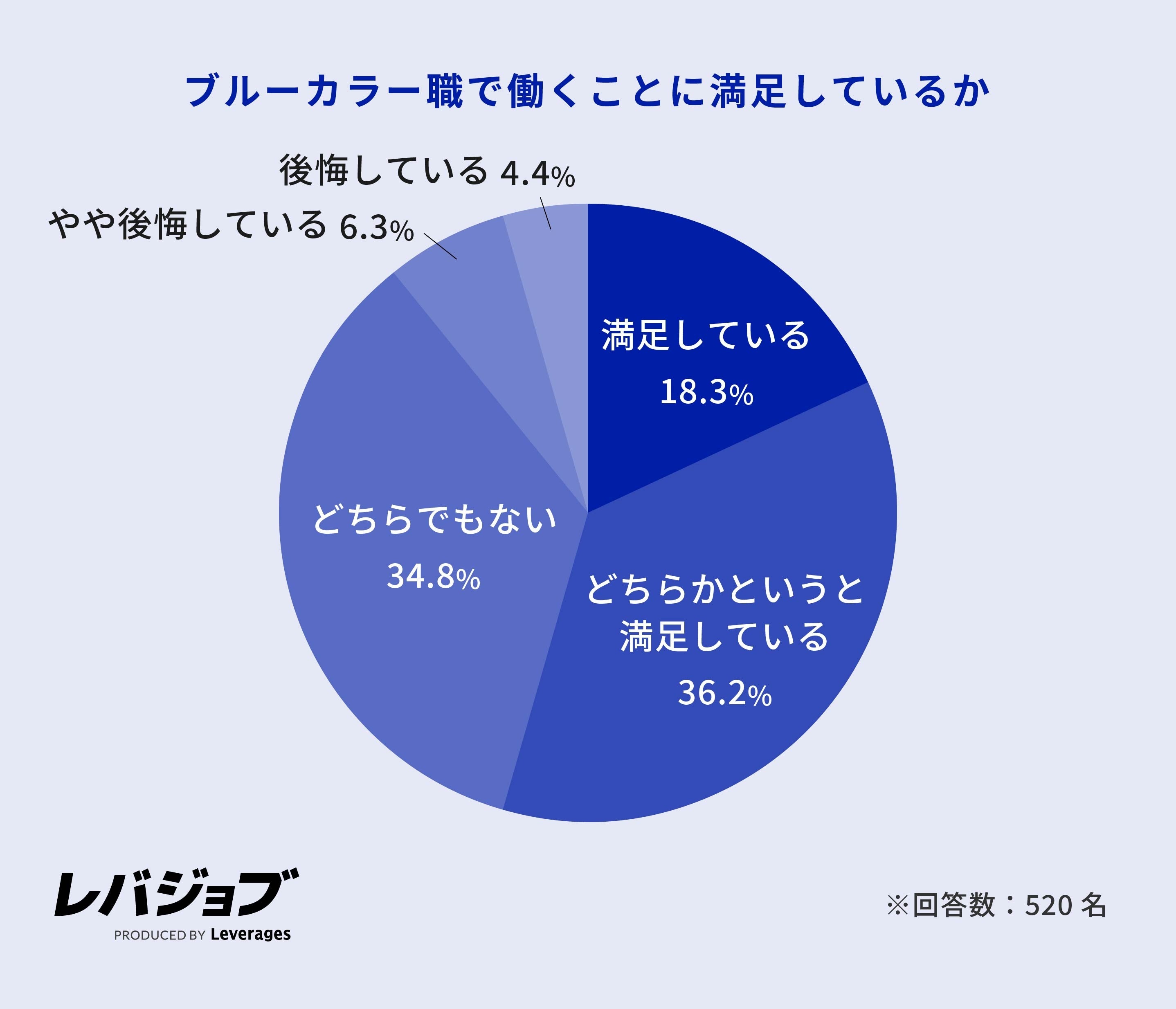 レバレジーズ株式会社が運営するエッセンシャルワーカー向けキャリア支援サービス「レバジョブ」は、現在ブルーカラー職*1に就く労働者のうち、前職がホワイトカラー職種に従事していた方520名を対象に転職実態調査を実施しました。