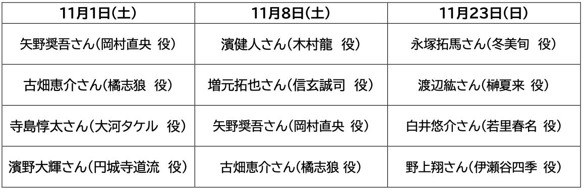また、イベント期間中は、「アイドルマスター SideM」の豪華声優陣によるトークショーイベントを開催いたします!※1トークショーイベントは、11月1日(土)、8日(土)、23日(日)の3日間開催され、西武園ゆうえんちならではの企画や、豪華声優陣たちによる楽しいトークで盛り上がることができます!