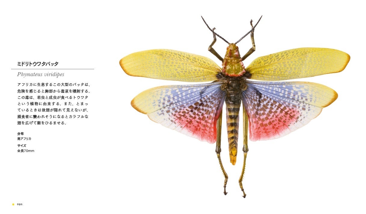 カラフルな翅を隠し持つバッタ、美しい模様をもつ蝶、金色やエメラルドに輝くコウチュウ……