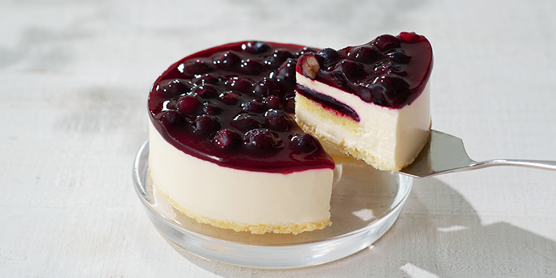 ブルーベリーをふんだんに使った初夏にぴったりな爽やかなレアチーズケーキです。