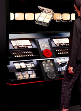 メイクアップにまつわる分析から購入まで、様々なメイク体験をバーチャル空間上で楽しむことができる、没入体験型ECサイト「KATE ZONE」が店舗と連動。什器にスマートフォンをかざすと「KATE ZONE」にアクセスでき、メイク提案などのサービスをご体験いただけます。