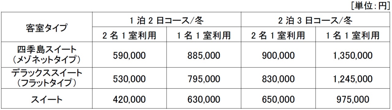 2020年12月より運行を開始し、多くのお客さまからご好評をいただいている、「1泊2日コース/冬」と「2泊3日コース/冬」を2024年度も設定します。