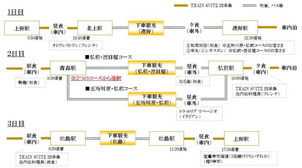 ※ 下線の出発日分をJR東日本グループの(株)JR東日本びゅうツーリズム&セールスより販売。
