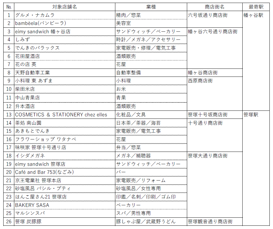・対象店舗一覧(26店舗)