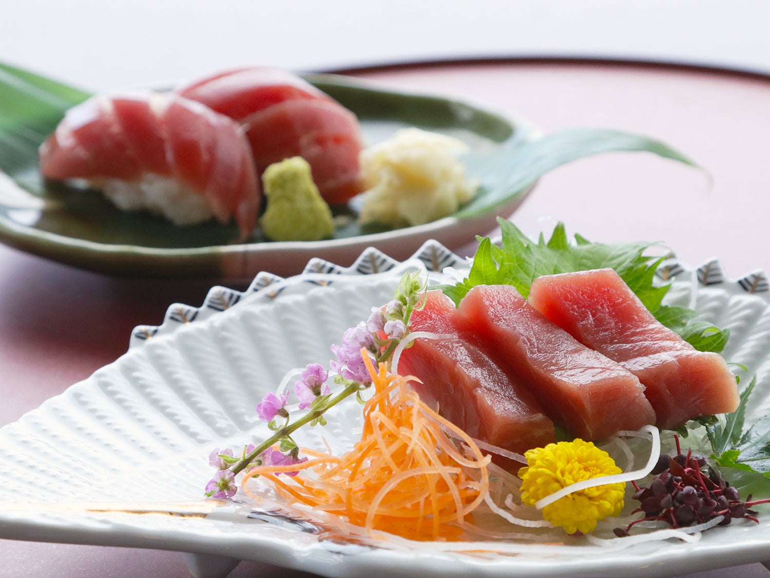 ・夕食時に、マグロお造り&握り寿司2貫(お一人ごとに)、お子さまには、マグロ&海老の握り寿司