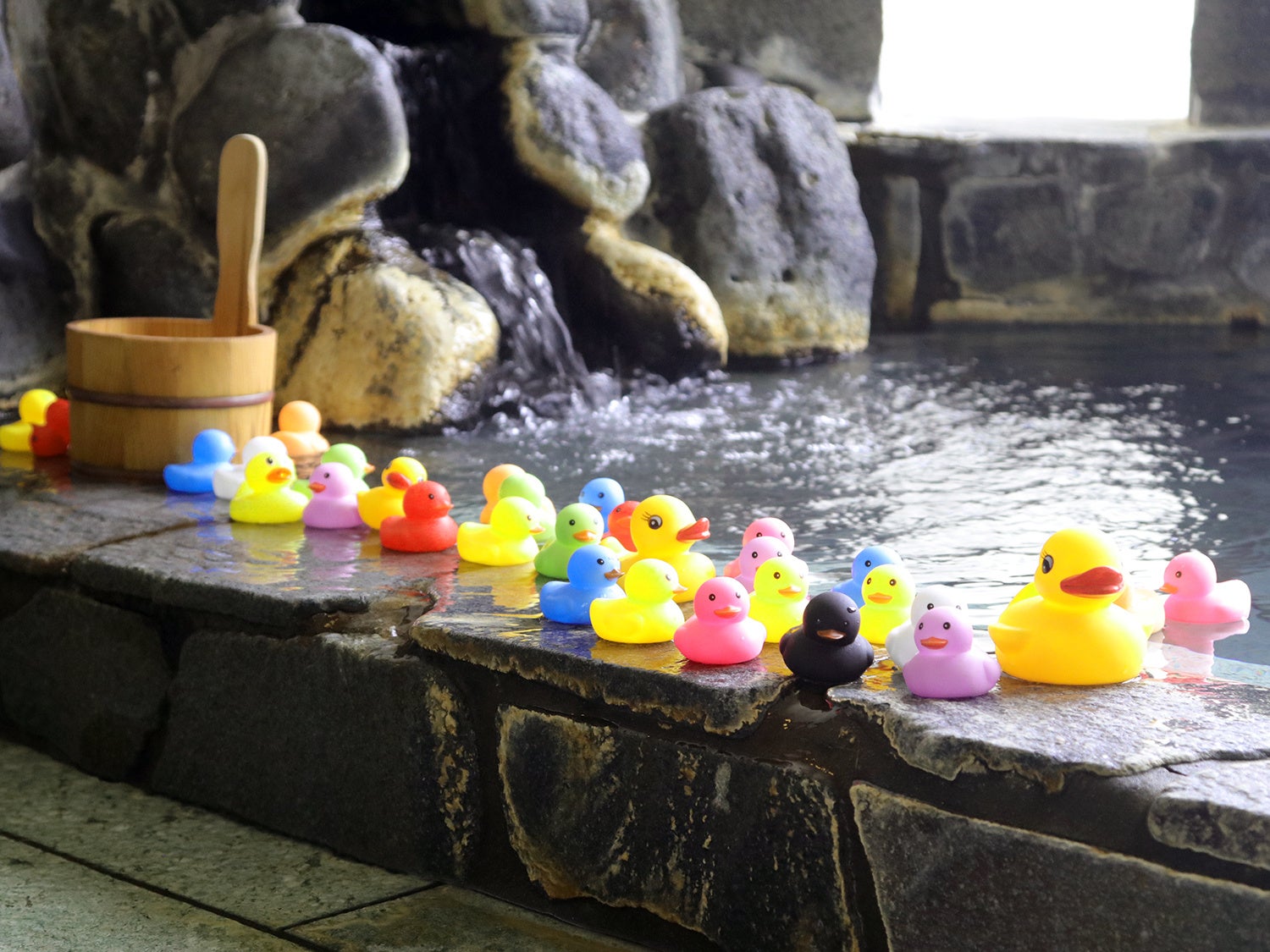 豊富な湯量(毎分300ℓ)を誇る2本の自家源泉かけ流しの湯は、温泉大浴場や露天風呂、ジェットバスと岩造りから選ぶ、計4ヶ所の貸切風呂(45分2,000円)でご堪能いただけます。