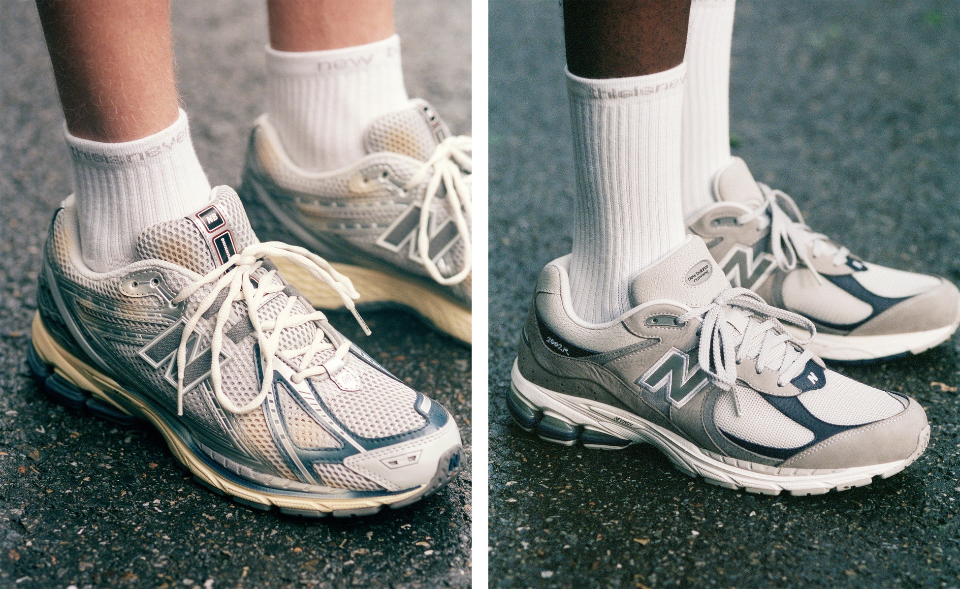 今回のコラボレーションは架空のランニング大会「2022 DOWNTOWN RUN」をテーマにデザイン。1990年代に多くの人が朝のジョギングで履いていたシューズをインスピレーションの源にデザインされています。初登場となる「1906R」は、オリジナルは当時「2002」と同じソールを搭載し、その名にニューバランスブランドが創業した年である“1906”を冠したハイパフォーマンスランニングシューズ。今回「2002R」と同じソールにアップデートし「1906R」としてデビューします。このコラボレーションでは、グレーとシルバーのシンセティックレザーアッパーとメッシュのコンビネーションに加え、ヴィンテージ風の加工が特徴です。「2002R」は、クラシカルなグレーのヌバック、スエードとメッシュのコンビネーションに深見のあるネービーのアクセントを施し、シックに仕上げています。