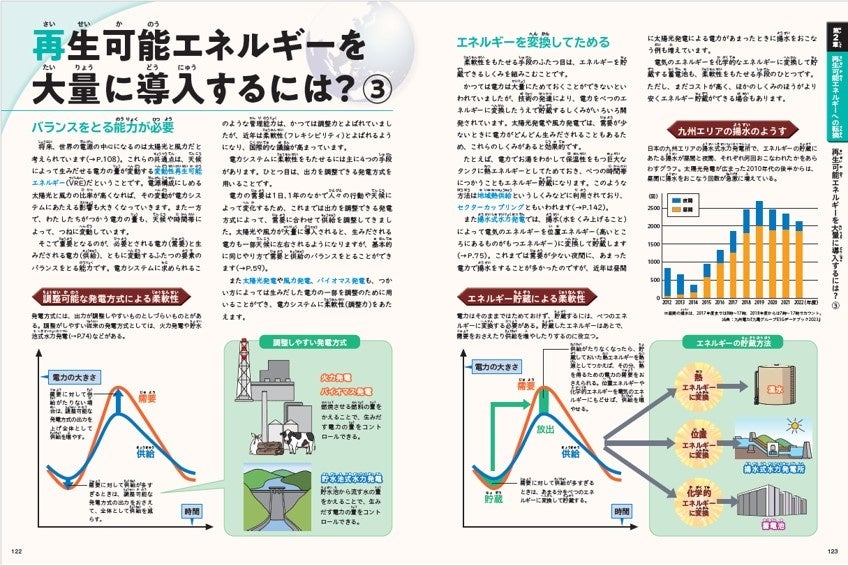 ▲2巻第2章より。天気によって出力が左右される太陽光・風力発電を大量に導入するため、技術開発だけでなく、需要と供給のバランスのとり方について、新しい考え方を導入した対応がはじまっている。