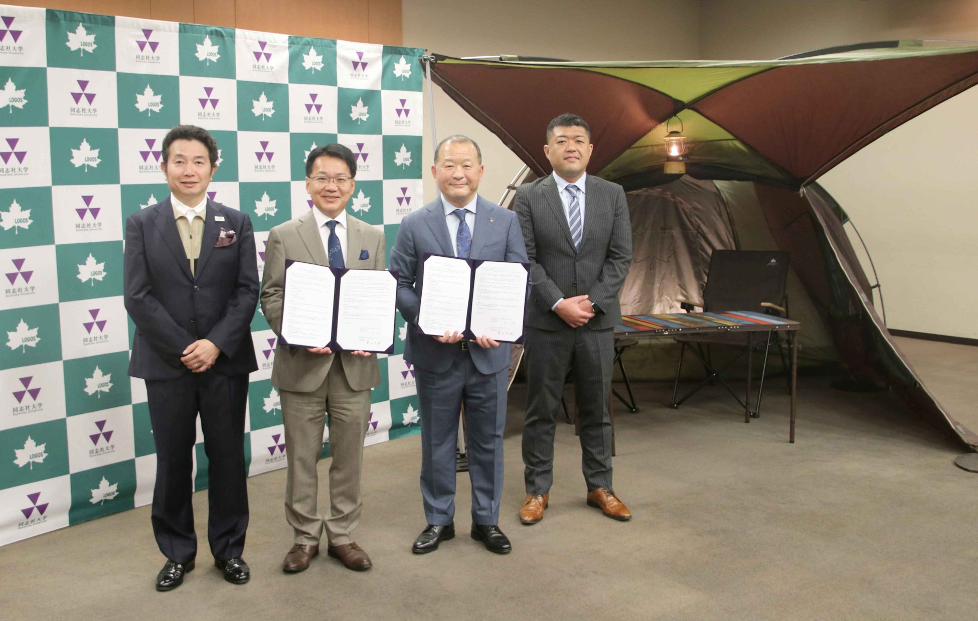 株式会社ロゴスコーポレーションは、「Enjoy Outing!」をテーマフレーズに、アウトドアメーカーとして多様な事業を展開されてきました。本学の既存の教育・研究リソースにロゴスコーポレーションの挑戦的な取り組みを重ねることによって、自然を体感できる教育、次世代を担う人材育成、地域への貢献などの新たな道を共に切り拓いていきたいと願っています。