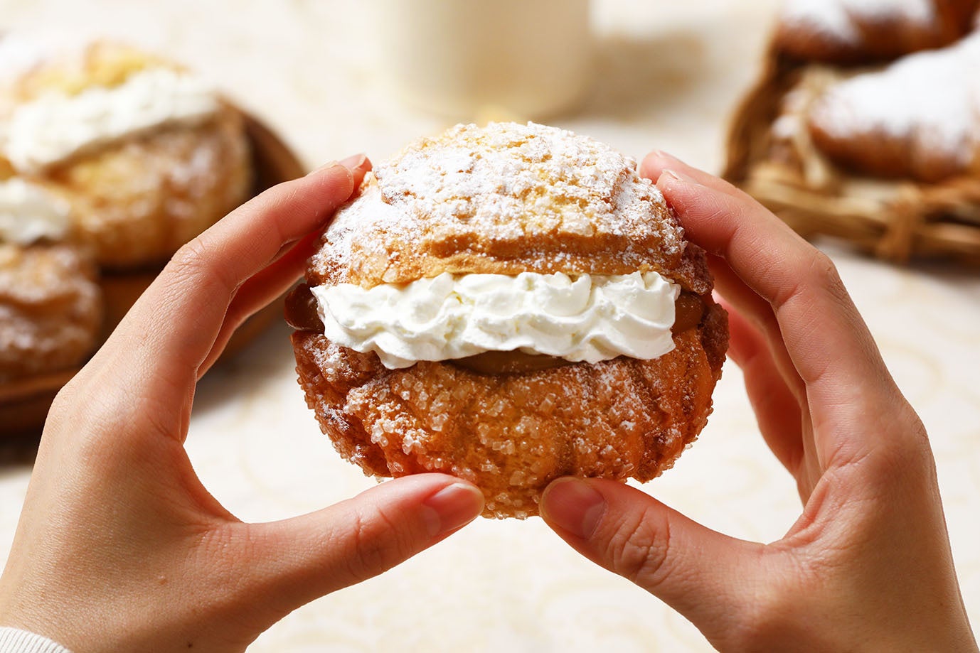 こだわり:ザクザク食感のメロンパンに、生キャラメル味のクリームとホイップクリームをサンドしたスイーツのような菓子パンです。ザクザクのメロンパン、なめらかな生キャラメル味のクリーム、ふんわりとしたホイップクリーム。甘くコクのある味わいといろんな食感が楽しめるクリームサンドです。