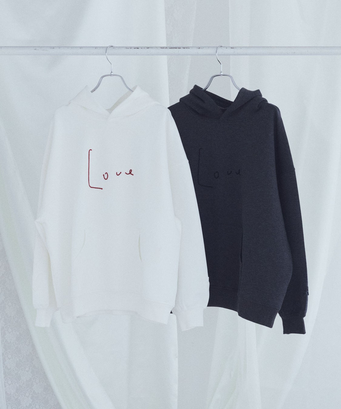 高橋愛さんの名前に因んだ直筆の“Love”の文字がポイントのパーカーです。丸みのあるシルエットがこなれ感を演出。