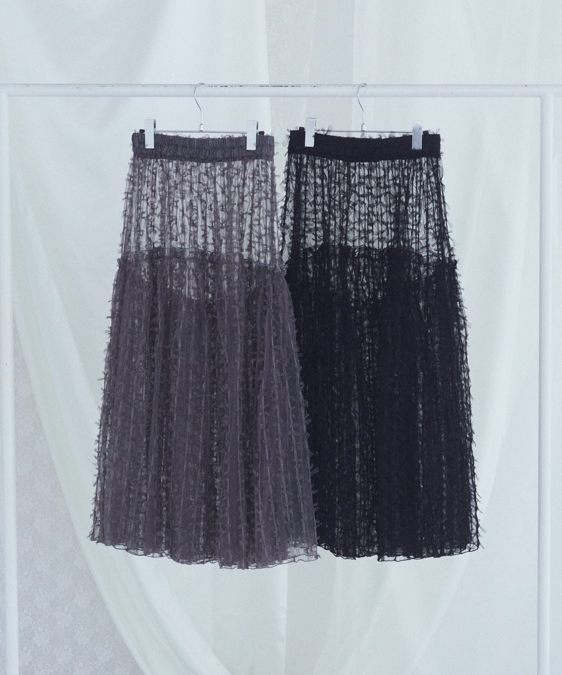 今年トレンドの「リボン」をふんだんにあしらったスカート。下にパンツをあわせてレイヤードスタイルがお楽しみいただけます。