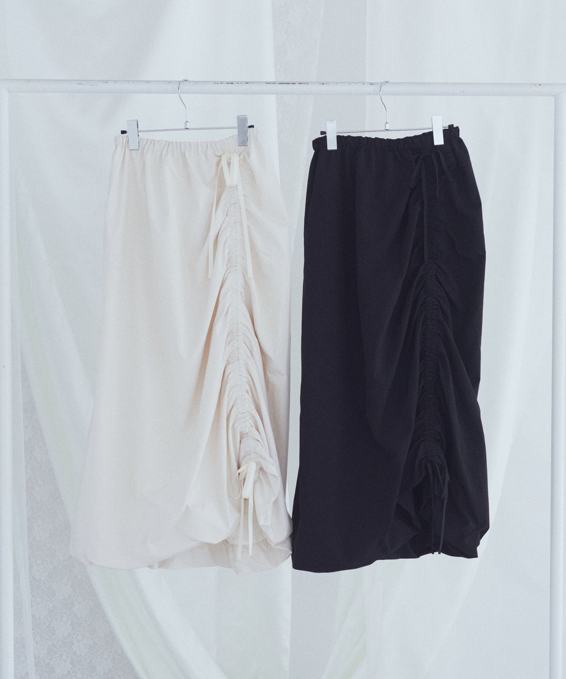 紐を絞りボリューム感を出すことで、丸みのあるフォルムに。お尻が隠れる丈感で体型カバーも叶えます。