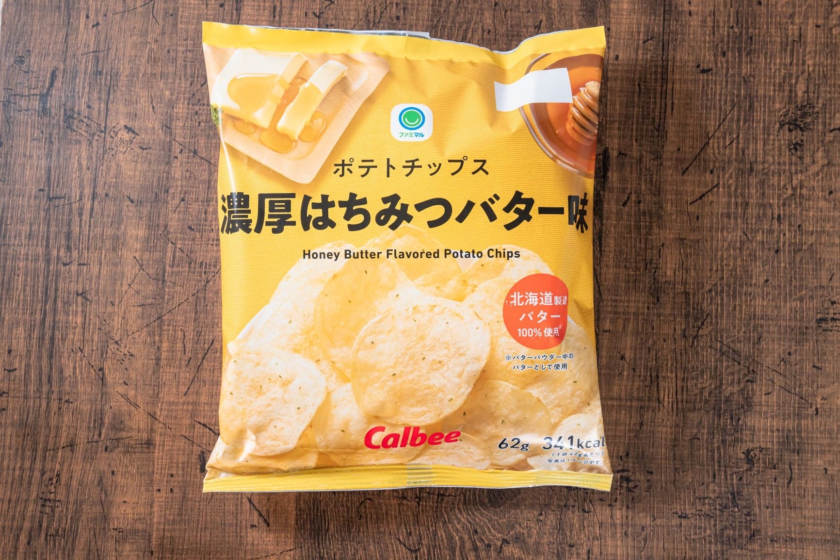 【内容】北海道製造のバターを100%使用。バターとはちみつのバランスの良い味わいが人気のポテトチップスです。従来品に比べて味の濃厚さをさらに感じていただける仕立てにしました。