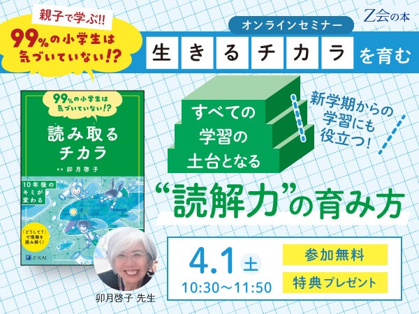 【Z会の本】4/1(土)開催「新学期からの学習にも役立つ!すべての学習の土台となる”読解力”の育み方」オンラインセミナー申込開始!【参加費無料】