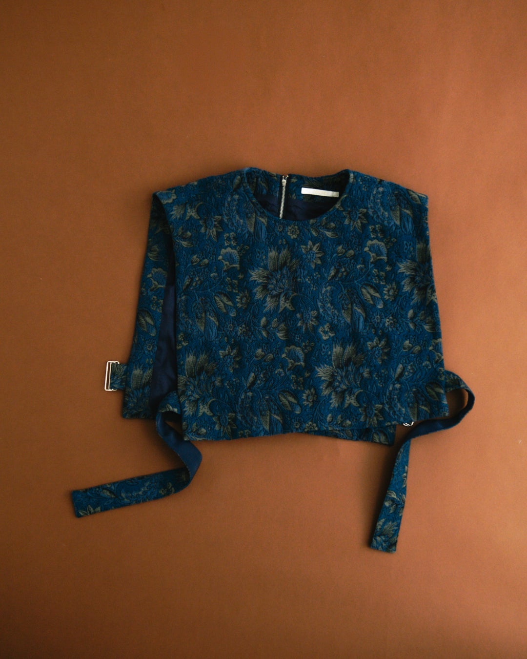 咲き誇る大輪の花と、静かに息づくつぼみが寄り添うように配置されたこの柄は、幾重にも色が重なり、秋の街にしっとりと馴染む深みのある色合いながらも、まとう人に華やぎを添えてくれます。