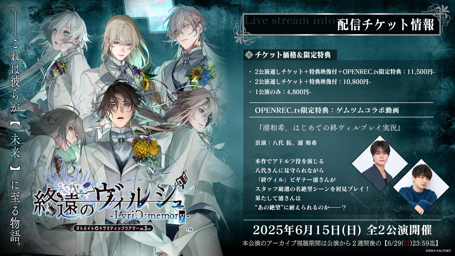 オトメイトドラマティックシアターvol.03re「終遠のヴィルシュ -LyriC:memory-」開催まであと2週間!OPENREC.tv限定動画本日から配信開始!