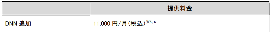 ※5 2DNN以降の場合に発生(1DNNのみのご利用の場合は基本機能で対応)。追加する1DNNあたりの提供料金。