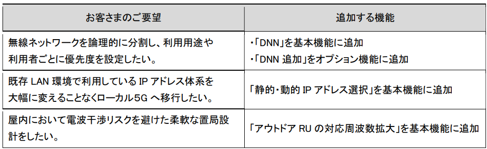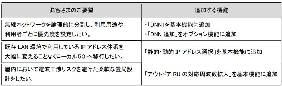 NTT東日本は、キャリアグレードな5G機能をお客さまの手間が少なく、従来よりも低コストで利用できるマネージド・ローカル5Gサービス「ギガらく5G」を2022年5月より提供開始しており、多くのお客さまにご利用いただいております。その中で、特に現場実装を見据えた本格的な導入をめざすお客さまからのご要望が多かった以下の機能について、2023年11月13日(月)より提供を開始いたします。