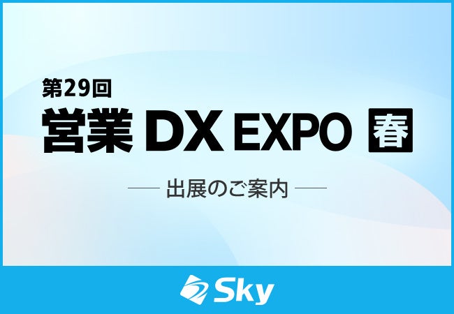 Sky株式会社は、2024年4月24日(水)~26日(金)に東京ビッグサイトで開催される、営業を効率化する製品 / サービスが一堂に会する専門展「第29回 営業DX EXPO【春】」に出展いたします。
