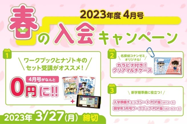 ・当キャンペーンは通信教育(教材配送)2023年度4月号とナゾトキ4月号をセットでご入会の方が対象。