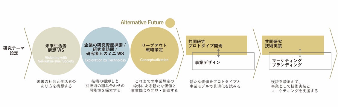 このたび「Leap Out Design」では、共に事業の新領域開発を行いたい企業を募集します。参画いただいた企業は、異分野人材との共創ワークショップを通じて新価値創造を行い、研究開発部門における次世代の研究方針の見直し、さらに新規事業のビジネスアイデアの創出からプロトタイプ開発が可能です。