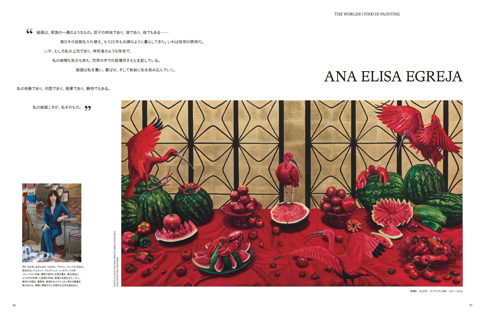 国内外で活躍する19名の女性アーティストが「絵画とは? 描くこととは?」という問いに向き合い、それぞれの言葉を寄せました。近年の彼女たちの代表作とともに語られるその言葉は、作品の線や色、質感と重なり合い、見る者の記憶や感覚を呼び覚ましながら、私たちを新しい景色へと導きます。女性のアイデンティティや社会的圧力をテーマに木炭で描くいま注目のアーティスト、アナ・パークや、26年間をデュッセルドルフで過ごし、現在は東京を拠点に活動する村瀬恭子など、全28ページにわたり、近年の代表作とともにその力強いメッセージをお届けします。