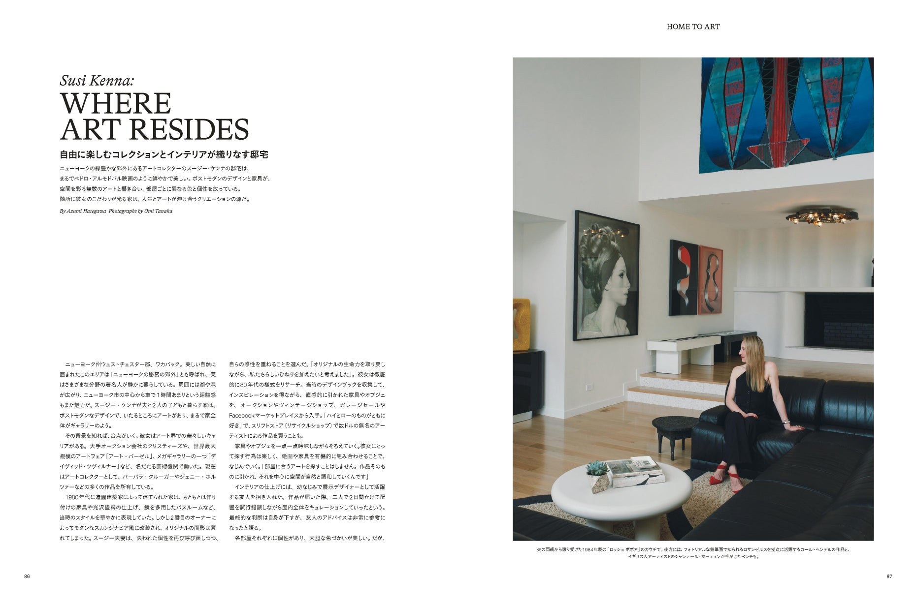 地域のアーティストを支えたり、新しい活動を生み出したりと、アートを軸に多彩な営みを育む3名の女性コレクターたち。フランスのロワール渓谷、ベルリン、ニューヨーク──そこには無数のアート作品が響き合うギャラリーのような空間や、季節ごとに表情を変える豊かな自然など、人生とアートが溶けあう個性豊かな暮らしがありました。アートへの愛と空間づくりへのこだわりにあふれる彼女たちのインタビューを、全22ページにわたり紹介します。