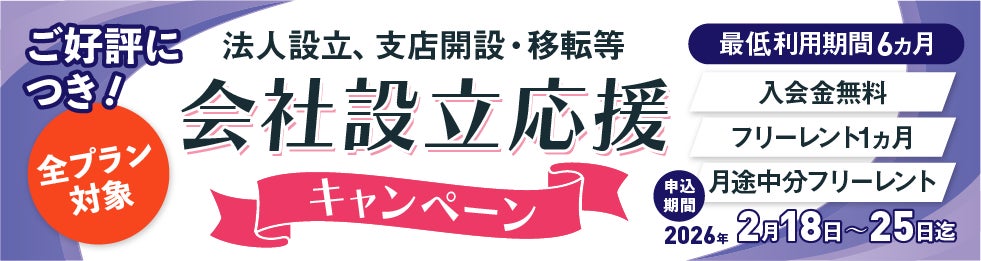 入会金無料・1か月フリーレント・月途中入会分フリーレント全プラン対象
