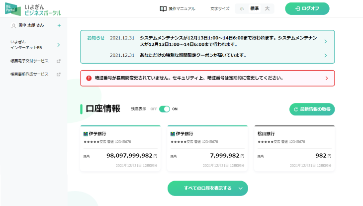 複数金融機関の口座残高・取引明細の一元管理が可能に