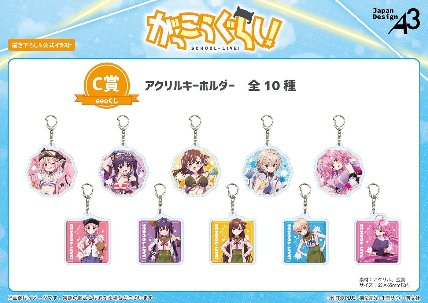 今回発売した「eeoくじ」の景品には、丈槍由紀たち学園生活部のみんなが水鉄砲を手にした“水着”テーマの描き下ろしイラストを使用。