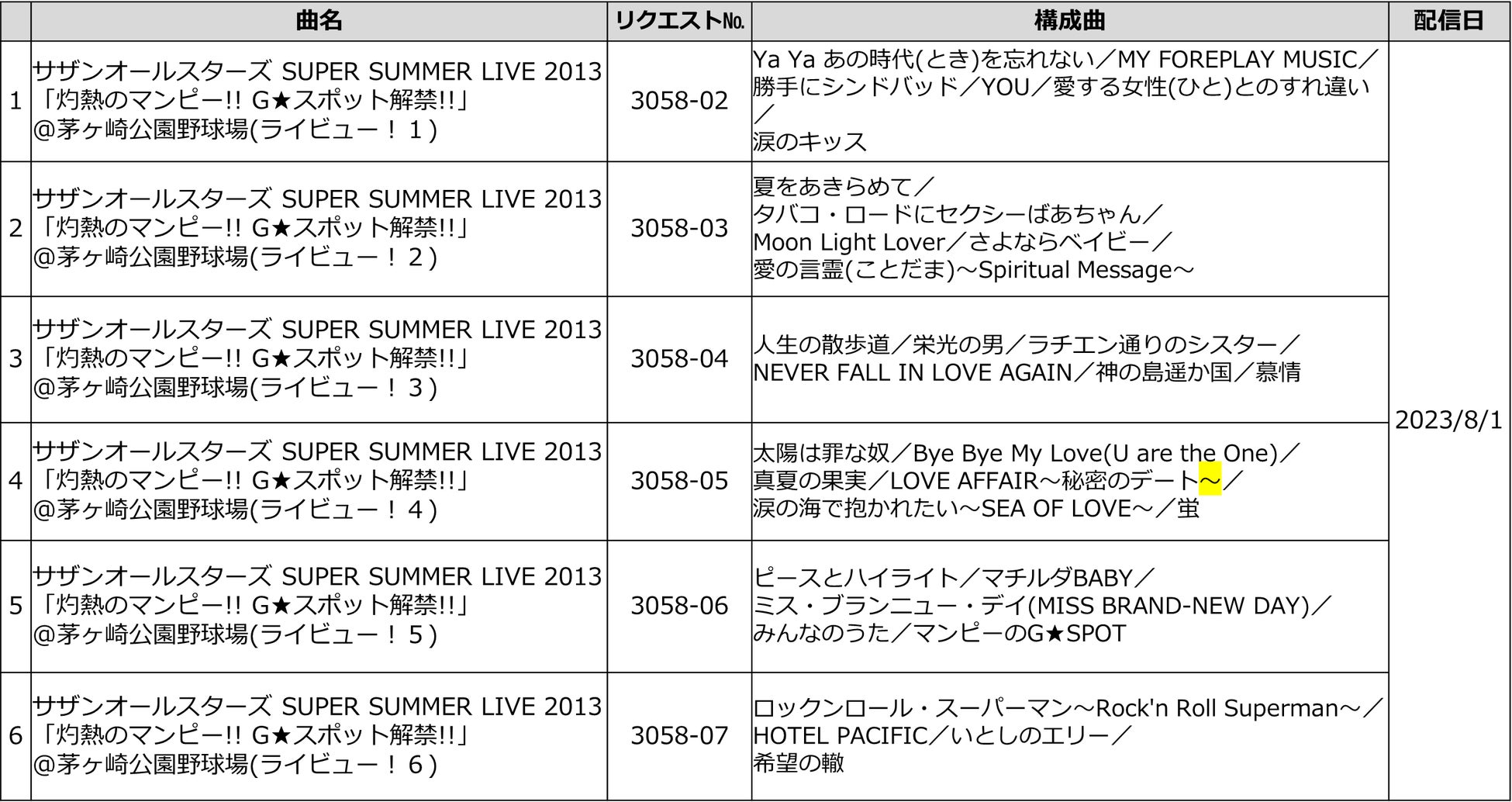 また、今秋『茅ヶ崎ライブ2023』が茅ヶ崎公園野球場にて開催されることを記念して、2013年に同会場で行われた伝説の野外ライブ『SUPER SUMMER LIVE 2013“灼熱のマンピー!! G★スポット解禁!!”』の映像を「ライビュー!」にて8月1日より配信します。