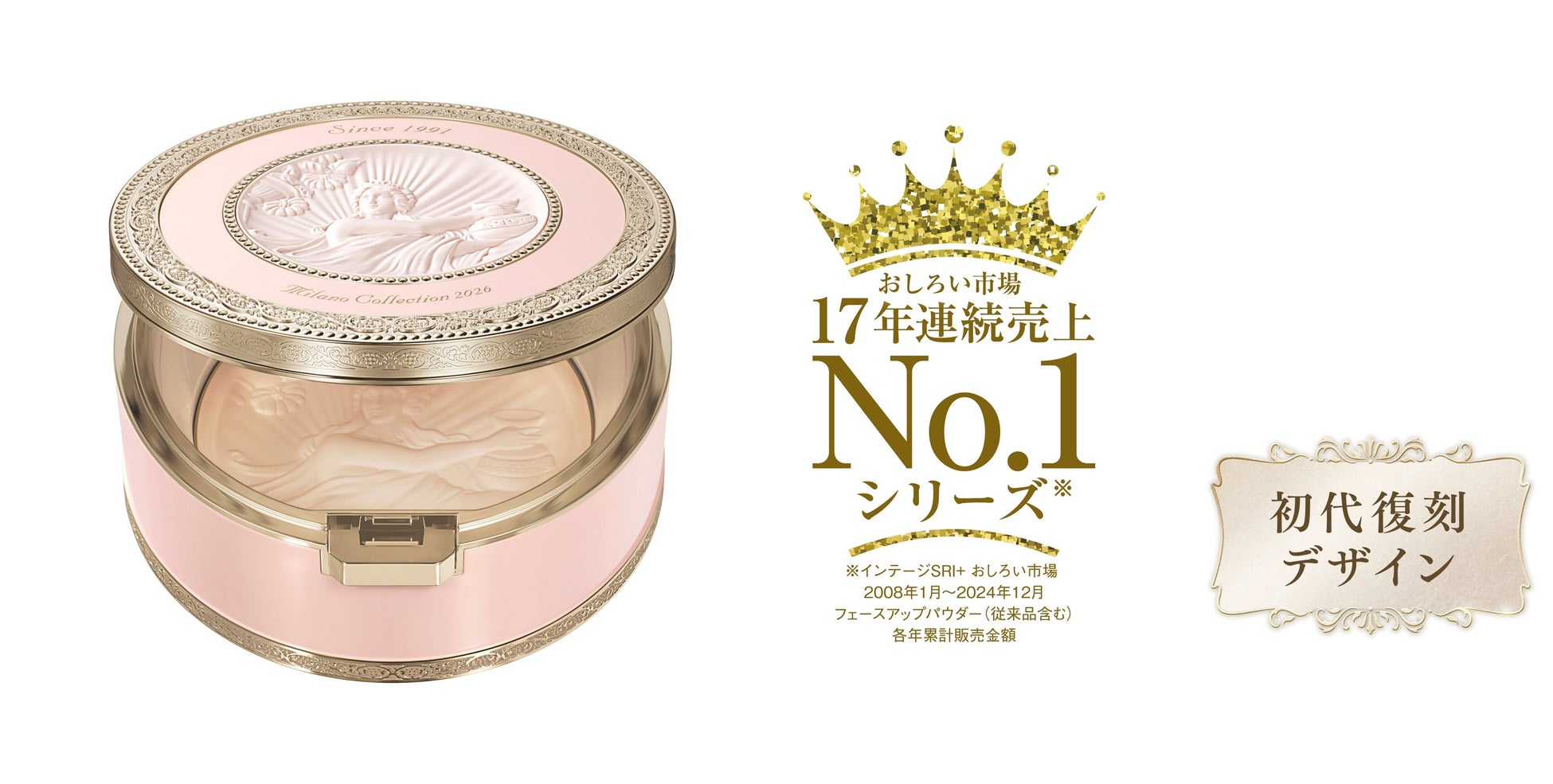 1991年ブランド誕生時の想いを凝縮。女神をピンクのボディとゴールドのレリーフが囲んだ、宝石箱のように美しい初代の容器を復刻した、「ミラノコレクション フェースアップパウダー2026」、11月22日(土)についに発売!