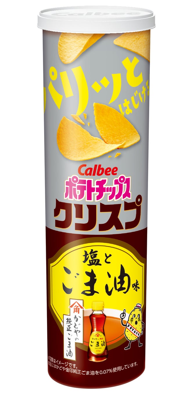 カルビー株式会社(本社:東京都千代田区、代表取締役社長:伊藤 秀二、以下カルビー)は、独自のパリッとした食感が特長の筒型ポテトチップス「ポテトチップスクリスプ」シリーズから、ごま油でおなじみのかどや製油株式会社(本社:東京都品川区、代表取締役社長:久米 敦司、以下かどや)の「純正ごま油」を使った新商品『ポテトチップスクリスプ 塩とごま油味』を2022年1月24日(月)から全国で発売します。※一部のコンビニエンスストアでも販売予定。2022年4月中旬終売予定。
