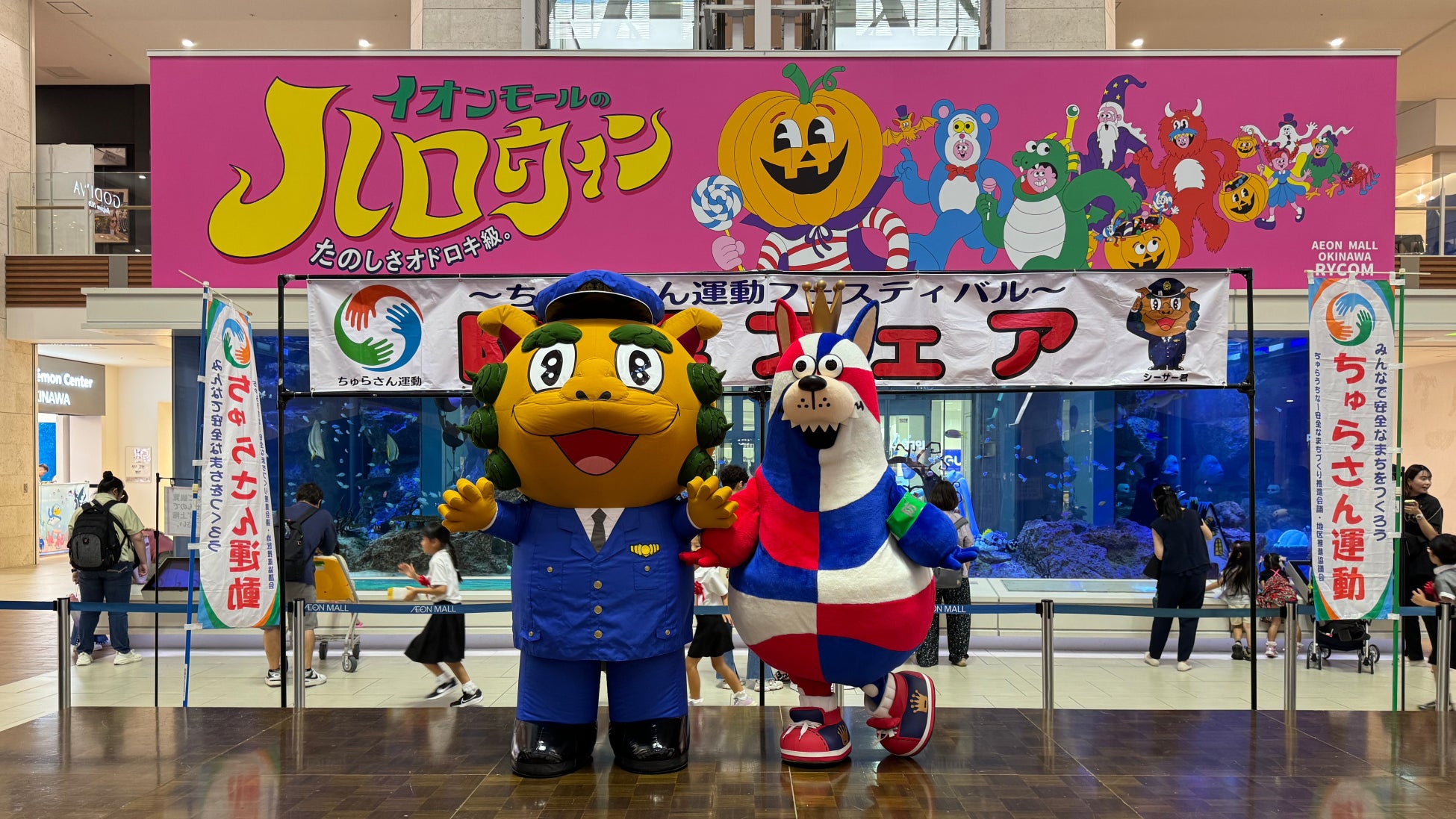 10月12日(土)は、イオンモール沖縄ライカムで開催された沖縄県警察本部主催の「防犯フェア」に参加しました。ゴーディーは沖縄県警察マスコット「シーサー君」と一緒に、来場者と交流しながら防犯意識向上の呼びかけを行いました。