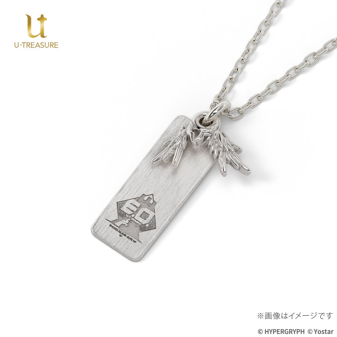 ロゴスの耳羽をチャームのデザインに落とし込んだプレートネックレス。プレート部分には所属陣営(ロドス・エリートオペレーター)のエンブレムを刻印しました。
