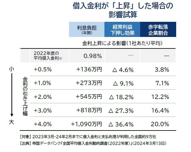 [注1] 帝国データバンクは、保有する企業データベースのうち2023年3月-24年2月間に決算を迎えた企業財務データ(約200万社収録)を対象に、企業の借入金利引き上げに対する影響度について調査・分析を行った