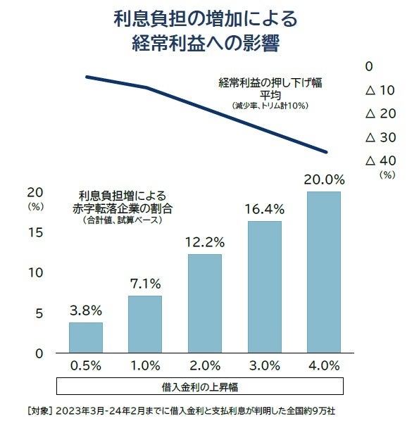 借入金利「1%上昇」で企業の7%が「赤字」に 利息は年270万円増、経常利益は9%圧縮 1社平均試算