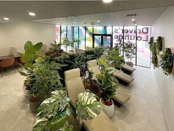 2024年問題への対策として、当社初のダブル連結トラックが走行・転回可能なスペースを用意。また、ドライバー専用の休憩施設「ドライバーラウンジ」を設置。