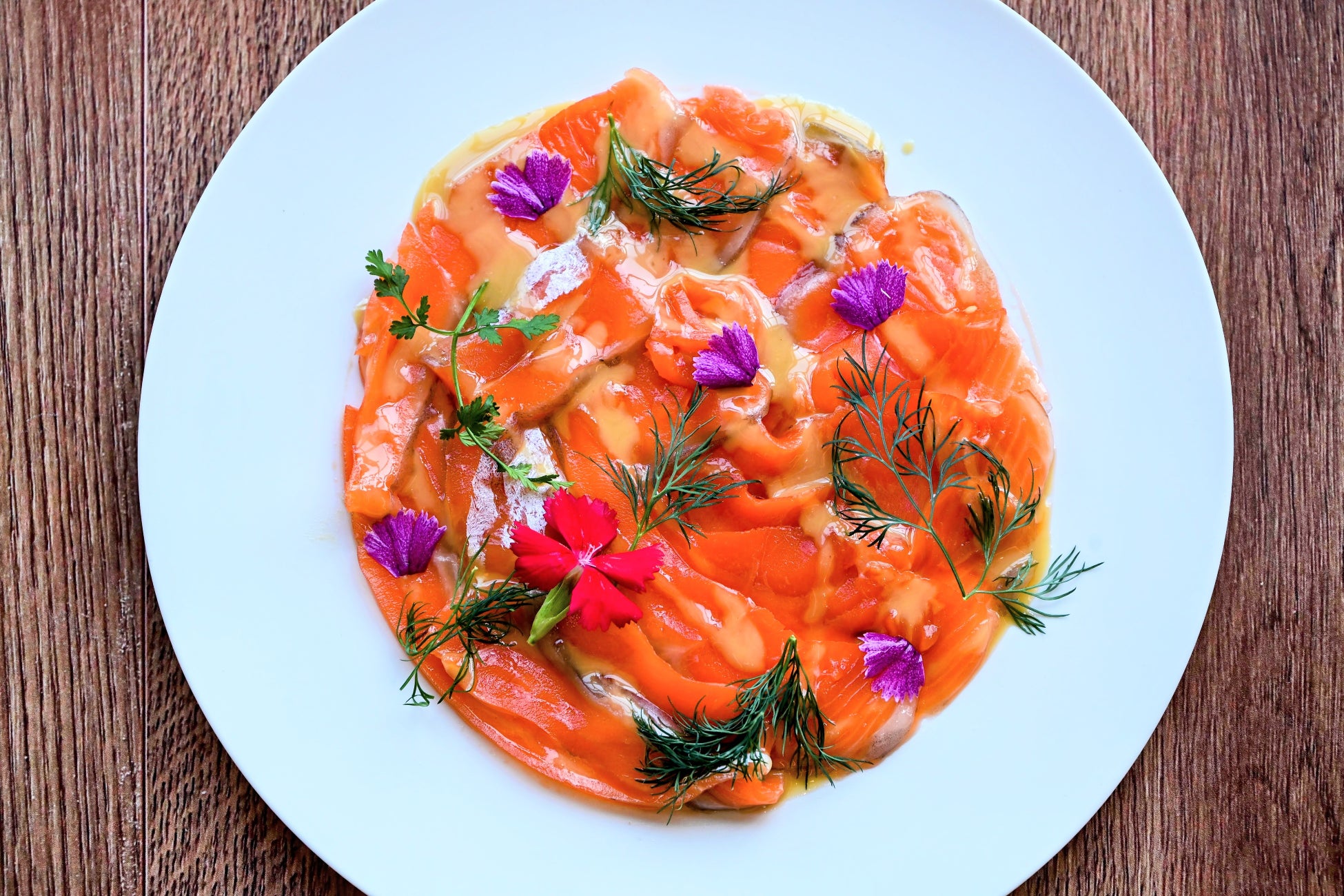 銀鮭のカルパッチョ 松の実のソース (ディナー限定)