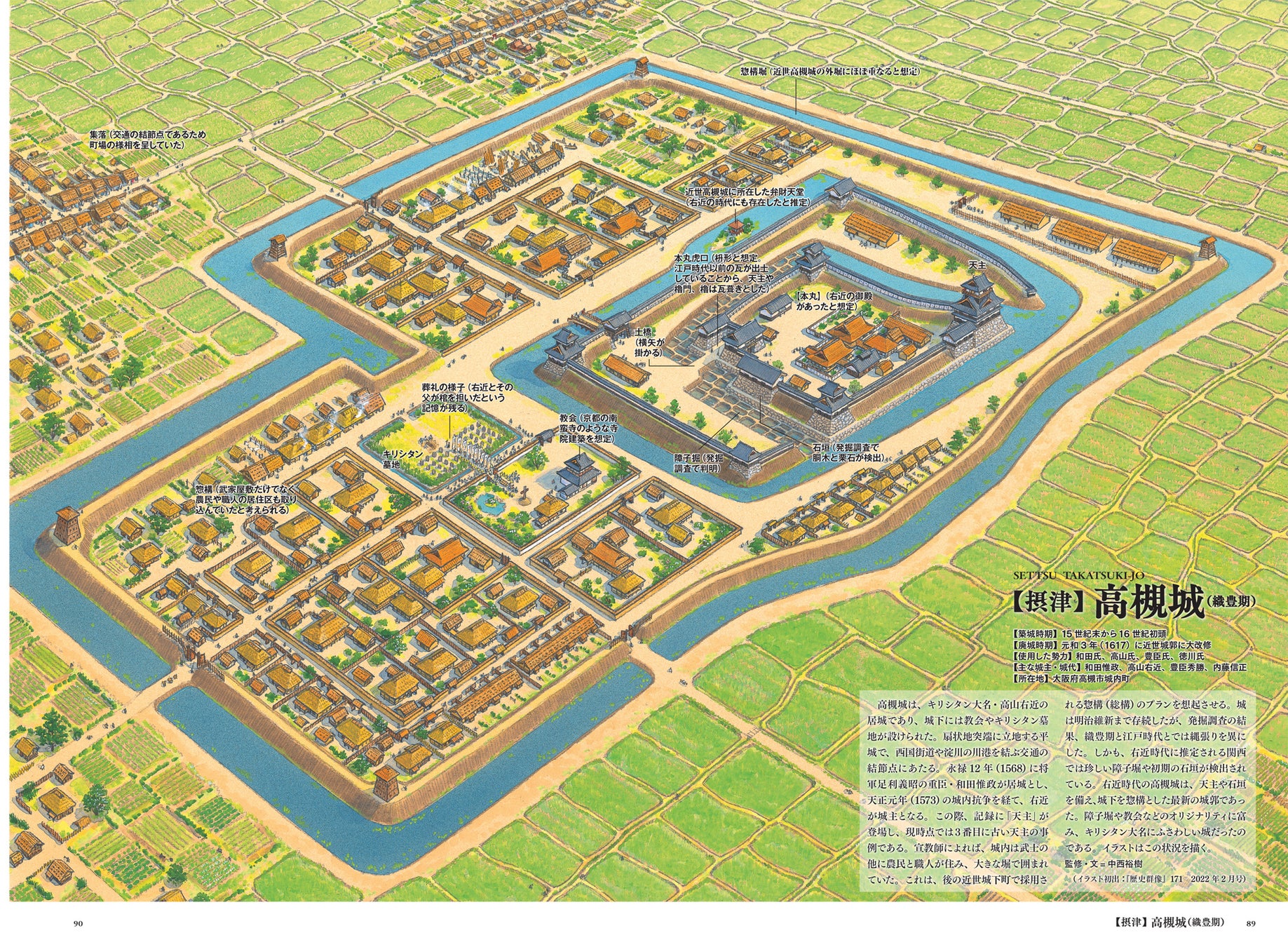 発掘調査結果を反映させながら第一線の研究家たちとよみがえらせた知られざる山城の鳥瞰・復元イラストや、誰もが知る名城天守の断面・透視イラストなどを、細部までよくわかるA3サイズで大きく掲載。城ファンを魅了しつづける、イラストだからこそわかる城の世界を紹介しています。