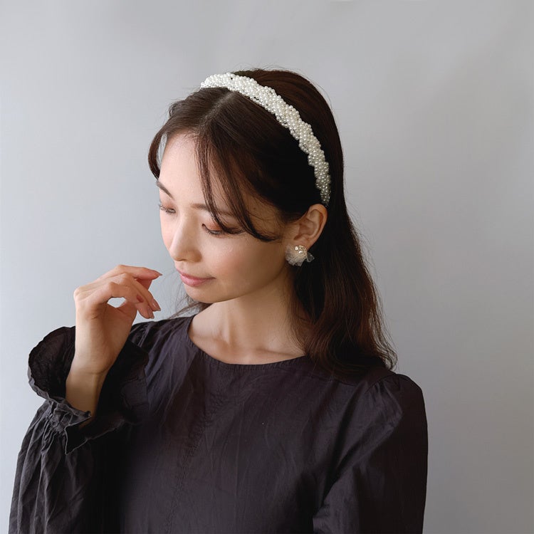 商品名:編み込みパールカチューシャ