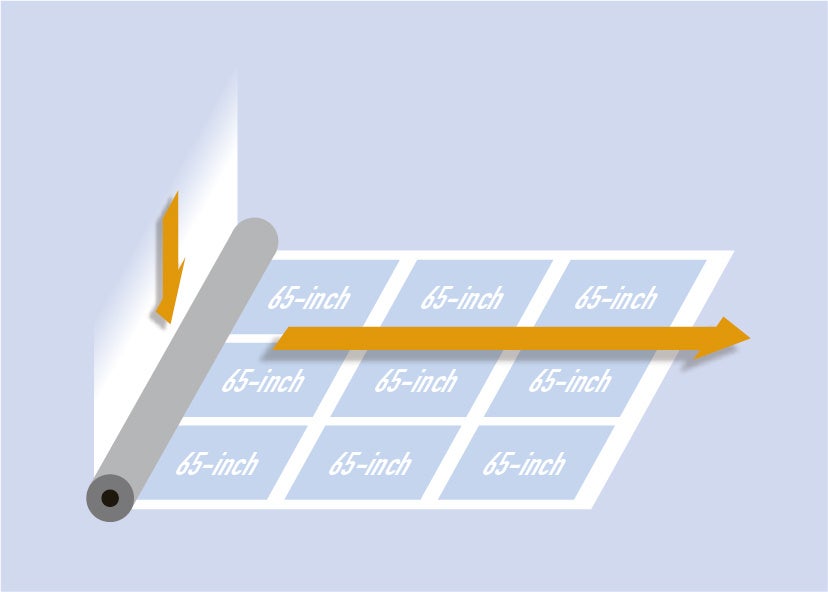 世界的に需要が増加している65インチの大型テレビ向けの光学機能性フィルムを効率良く生産(面付け)することができます。