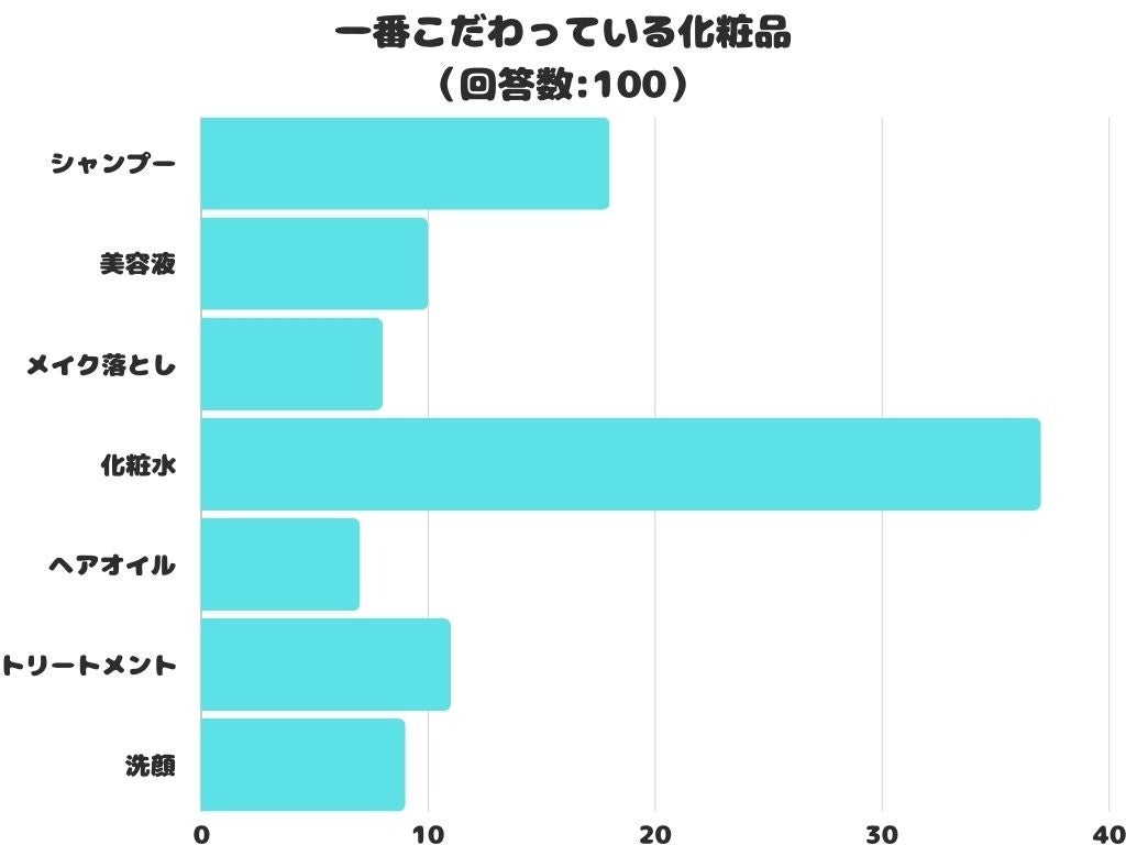 一番こだわっている化粧品をアンケートにて調査したところ、1位は「化粧水」でした。