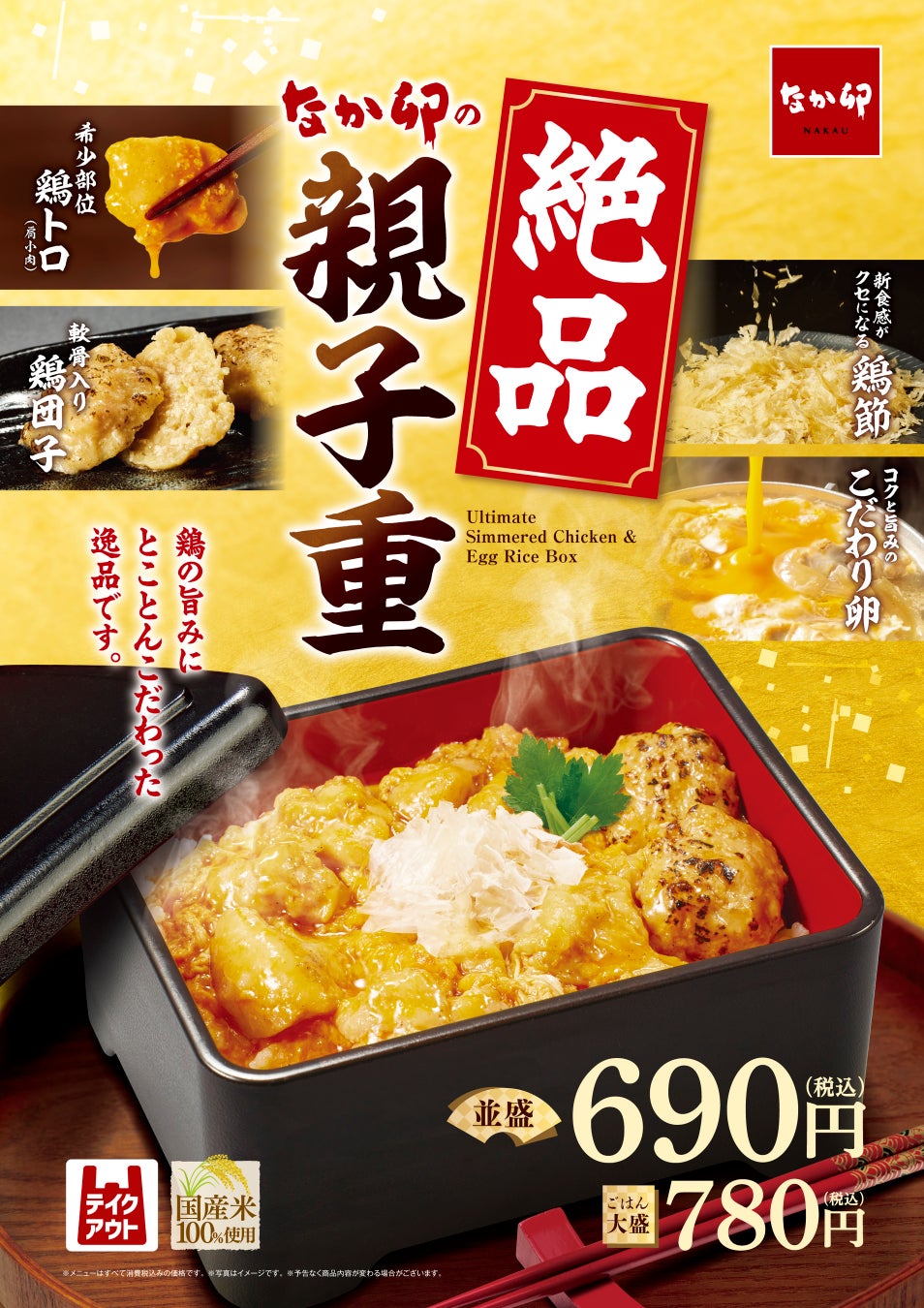 年末年始のちょっとした贅沢や日頃のご褒美に、ぜひお近くのなか卯の店舗やご家庭で「絶品親子重」をお召し上がりください。