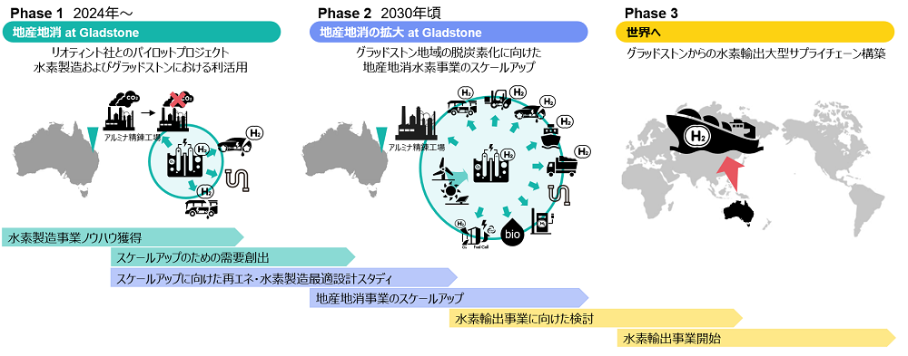 住友商事グループは、水素を脱炭素社会における将来の重要なエネルギーのひとつとして位置づけ、地域や水素の特性を活かした地産地消型事業、大量製造・輸送/貯蔵・利用を推進する大型バリューチェーン事業、新技術への投資など、水素関連の事業開発に多角的に取り組んでいます。本事業は、輸送コスト・リスクを抑えることができる地産地消型事業を出発点とし、事業を拡大し商用化を図った上で、将来的には豪州域外への水素輸出大型バリューチェーン事業を目指すものです。また、住友商事として最終投資決定を行った初の水素製造・供給プロジェクトであり、商用化に向けた段階的なアプローチとしての第一歩となります。