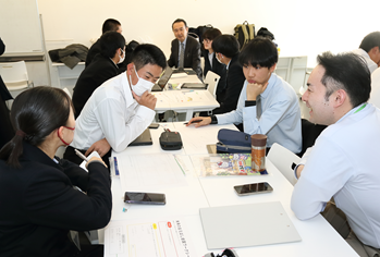 各カテゴリで行った議論を全体へ共有し、企業からフィードバックをいただきました。「地元野菜を使った冷凍食品の共同開発」、「めぶくID連携を活用した個人の運動量に応じて利用できるバスの仕組みづくり」、「まちめぐりができるおすすめスポット紹介アプリの開発」などといった高校生ならではの提案がなされました。