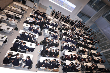 学生が以前より取り組んでいる探求学習テーマを7つのカテゴリに振り分け、その中で成果発表及び議論を行いました各自で考えた提案をさらに組み合わせてまとめあげるべく、積極的に意見交換をする姿が多く見受けられました。