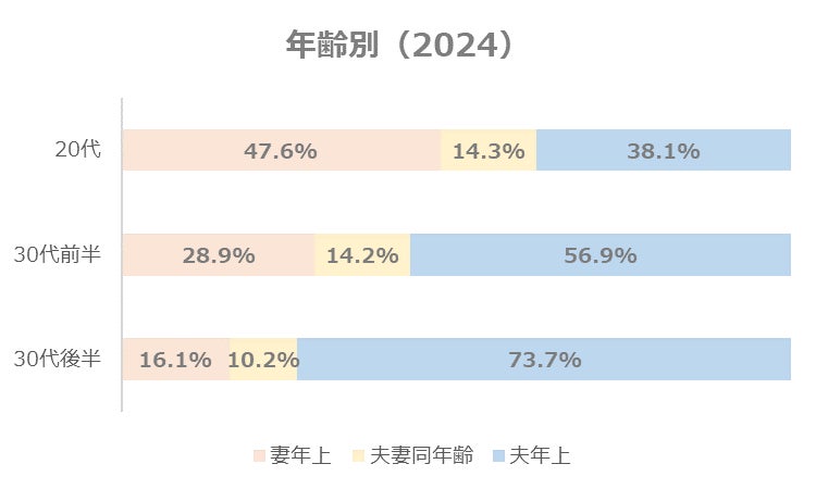 一方、冒頭で述べた「条件先行から夫年上婚が多い」という結婚相談所の傾向に当てはまらない年代があります。