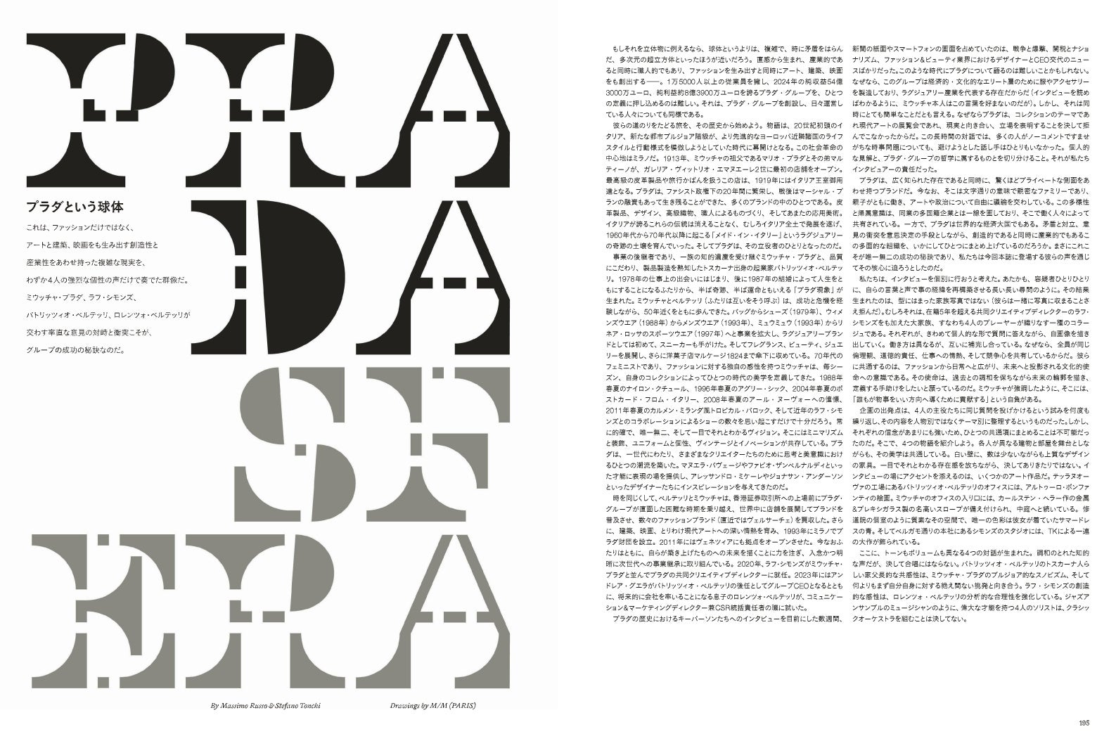 ミウッチャ・プラダ、ラフ・シモンズ、パトリッツィオ・ベルテッリ、ロレンツォ・ベルテッリの貴重なロングインタビューを掲載します。インスピレーションの源や、最初のショーから今日までプラダに通底するテーマなど、全20ページのボリュームで詳細に語りました。